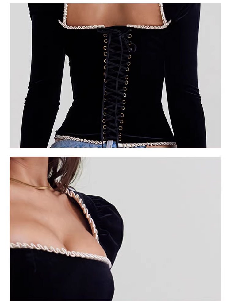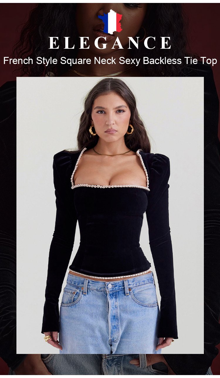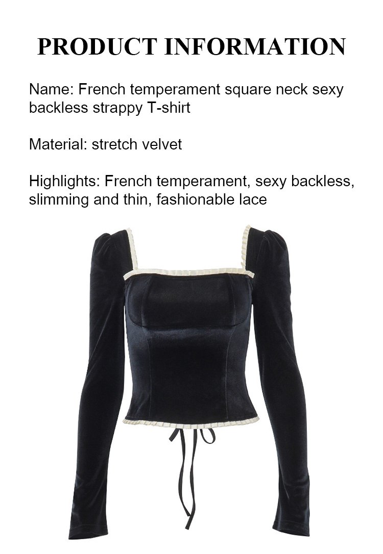 French style square neck sexy backless strappy T-shirt