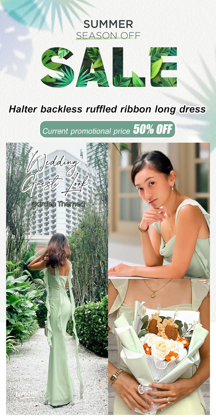 Halter backless ruffled ribbon long dress