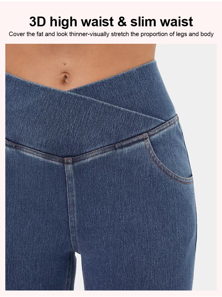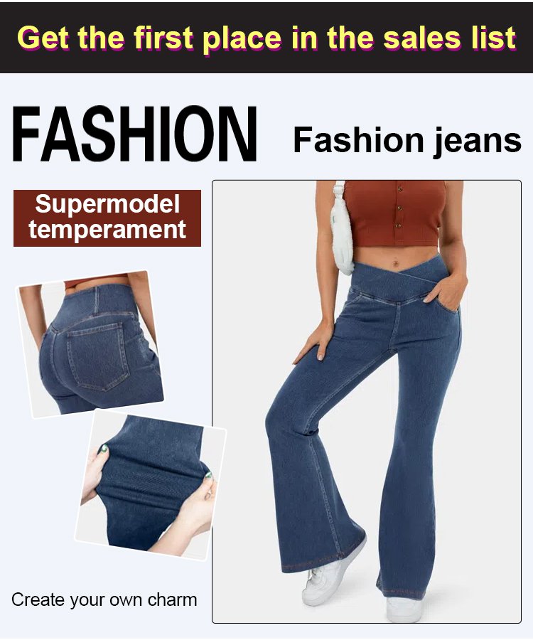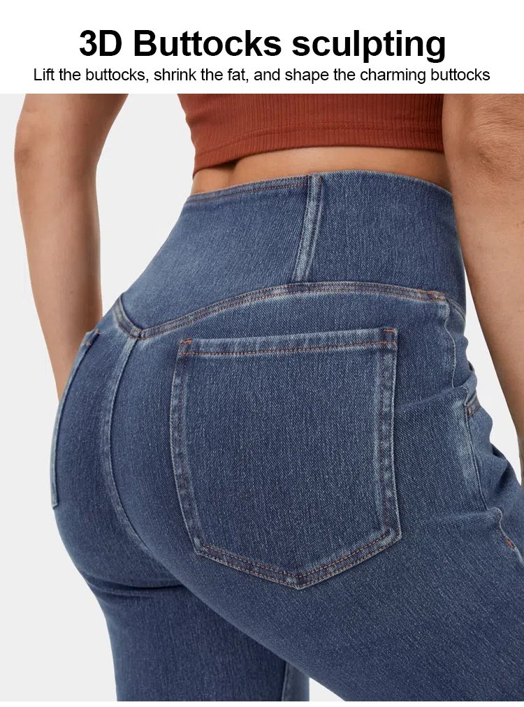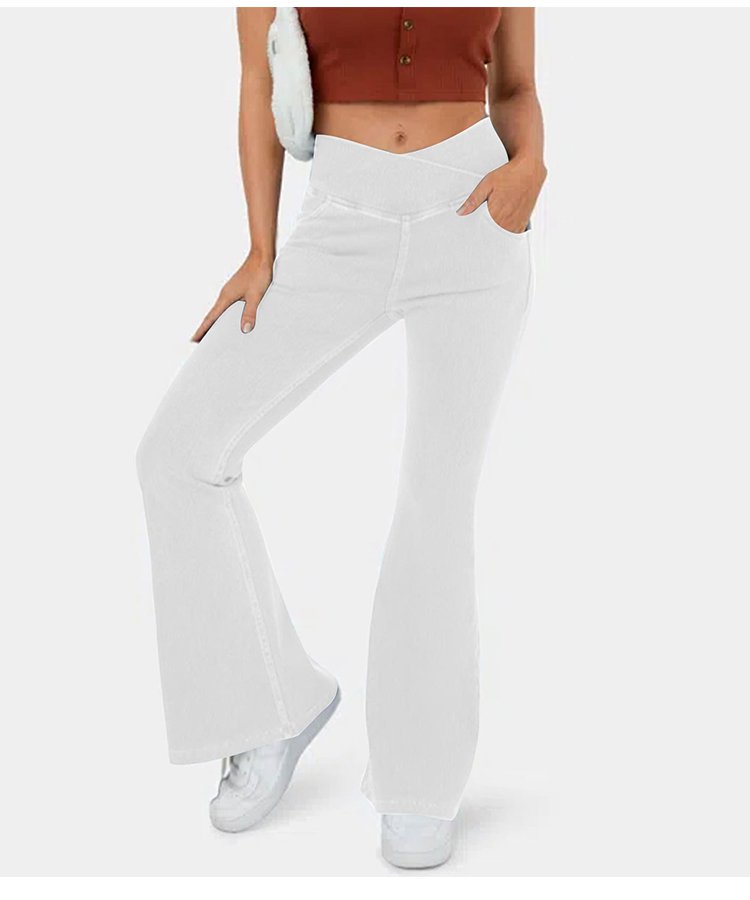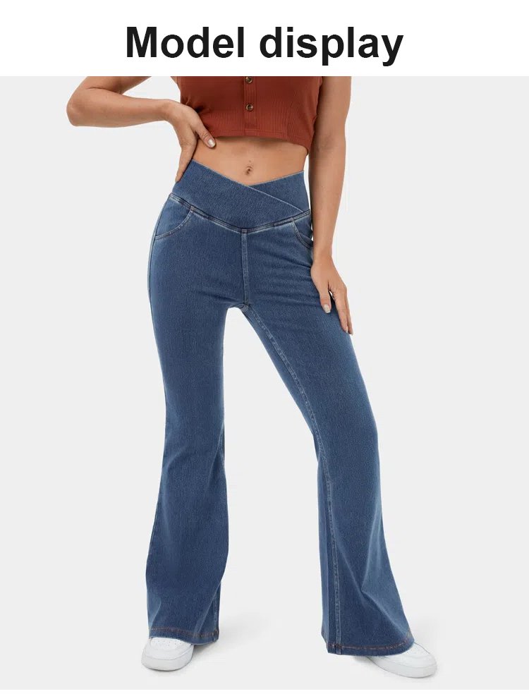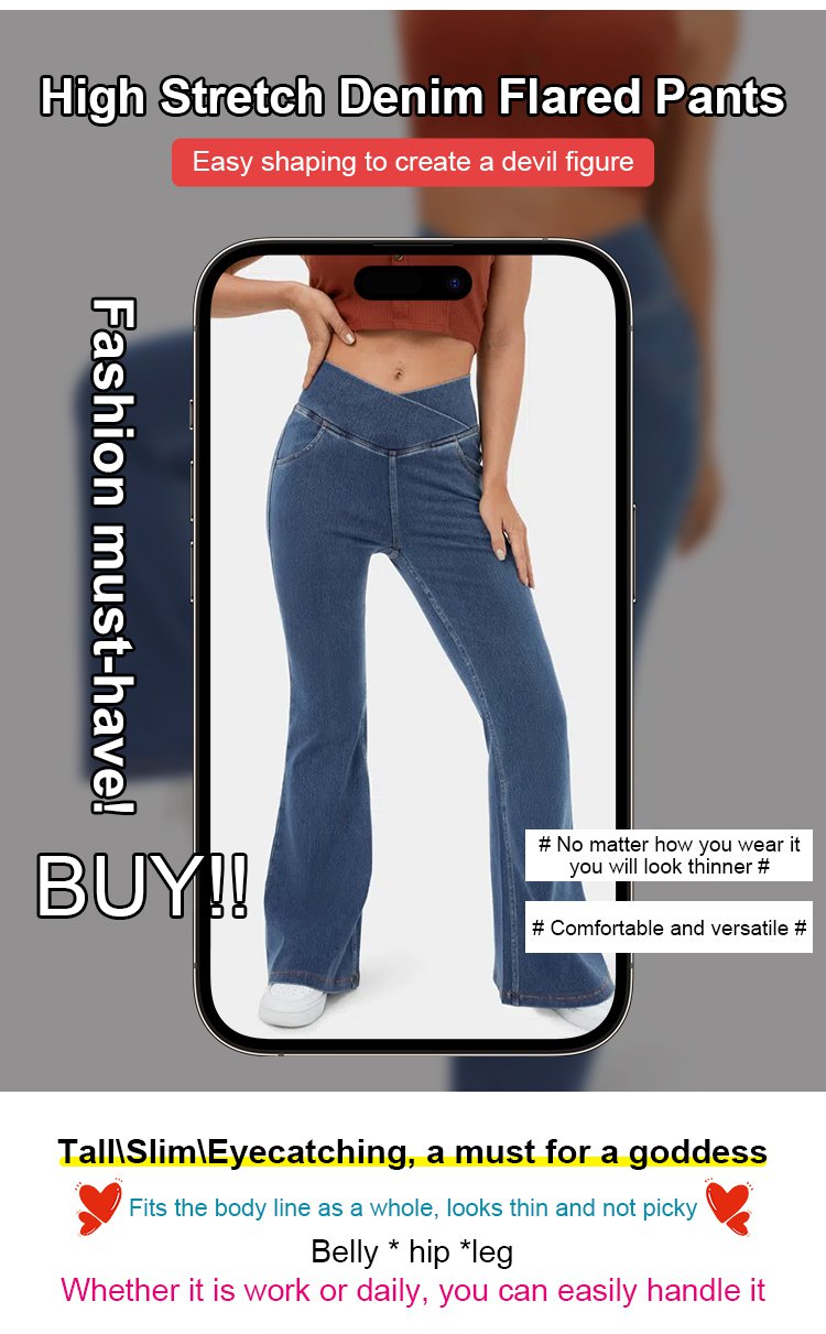 High elastic denim flared pants