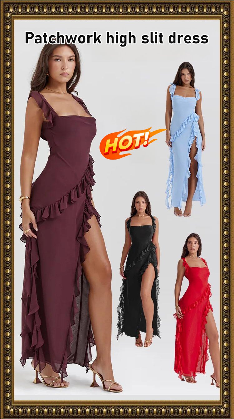 Fashion Sexy Wood Earring Splicing High Split Dresses